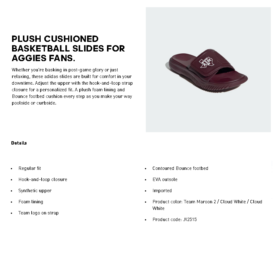 Dép Alphabounce Slide 2.0 Texas A&M Team Maroon 2 JI2515
