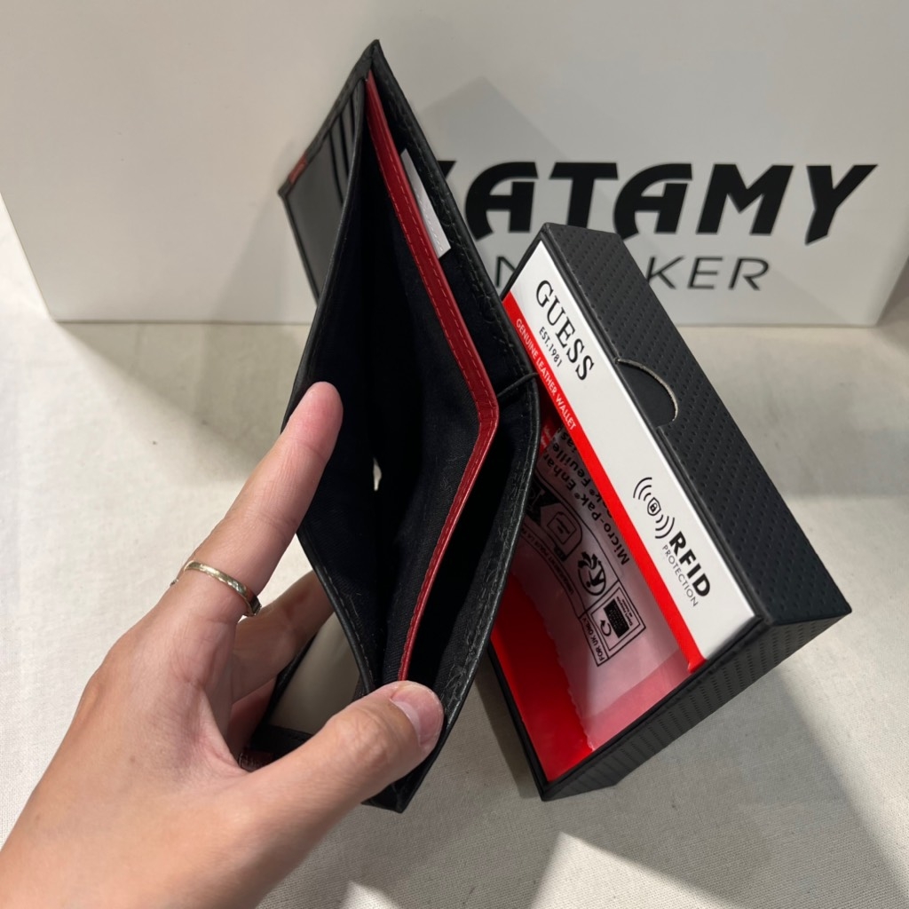 Ví GUESS Men's Leather Bifold With Fashion Details Black Red 31GU13X008 016