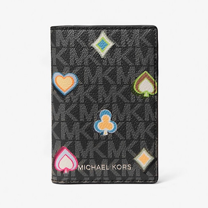 Ví Michael Kors Cooper Printed Signature Logo Folding Card Case Black Gift Box 36F5LCOD1U